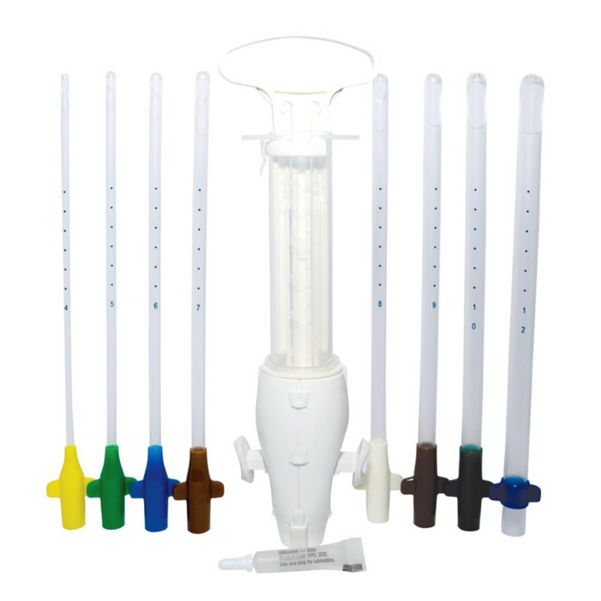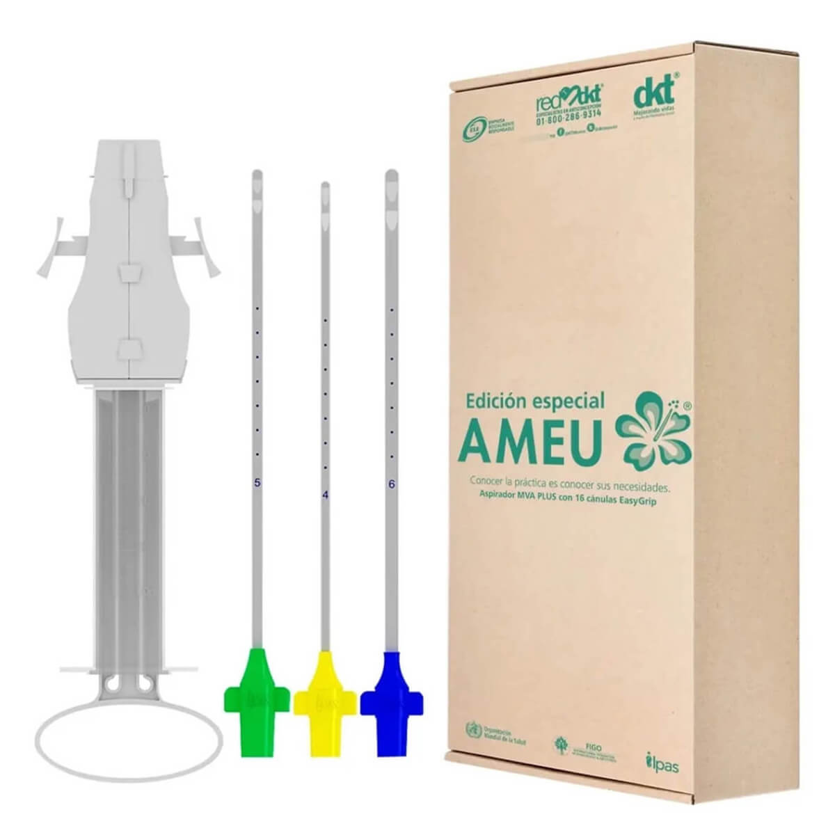 Jeringa de plástico grado médico, para aspiración manual endouterina, reesterilizable, capacidad de 60 ml, con anillo de seguridad, émbolo en forma de abanico, extremo interno en forma cónica, con anillo de goma negro en su interior y dos válvulas de control externas.