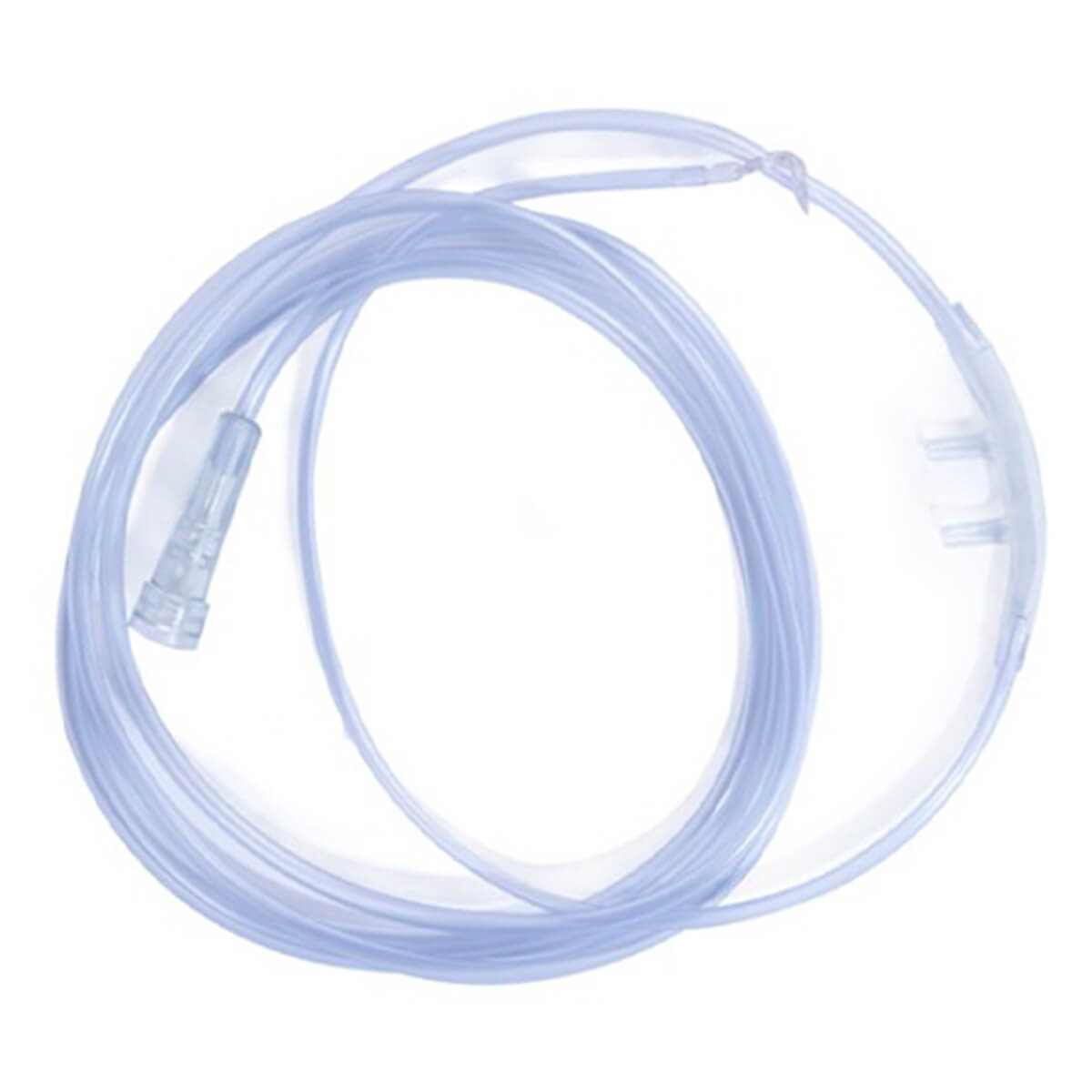 Catéter para suministro de oxígeno con tubo de conexión y cánula nasal de plástico.