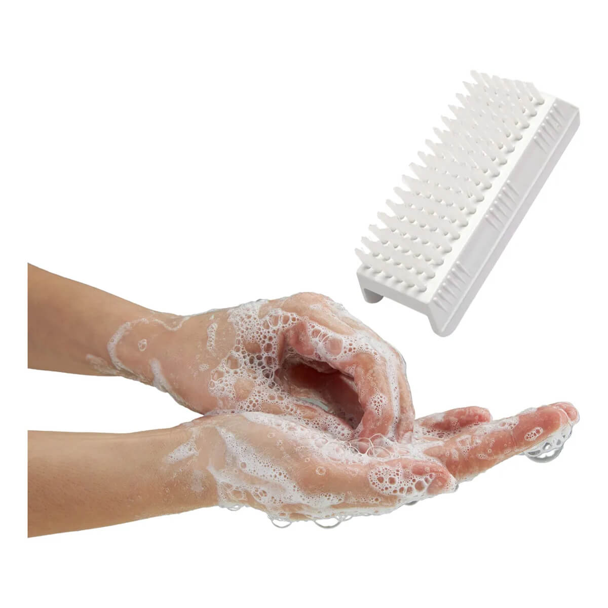 Dispositivo médico desechable, elaborado en plástico rígido de grado médico, diseñado para el lavado y cepillado de manos y antebrazos del personal quirúrgico antes de procedimientos. Presenta cerdas firmes y resistentes que permiten una limpieza profunda, acompañado de superficie ergonómica para un agarre seguro.
