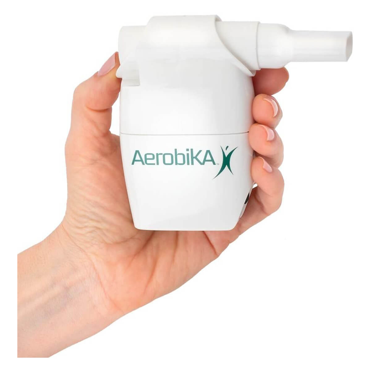 El AerobiKA es un ejercitador pulmonar portátil que trabaja con presión positiva espiratoria oscilatoria (PPEO). Su diseño ergonómico permite un uso cómodo en pacientes adultos y pediátricos. Genera vibraciones en las vías respiratorias durante la exhalación, lo que ayuda a desprender y movilizar secreciones acumuladas en las vías aéreas. Cuenta con 5 niveles de resistencia.