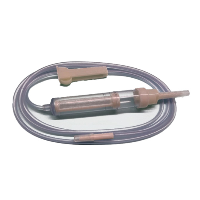 Dispositivo médico estéril, libre de pirógenos, elaborado en materiales de grado médico atóxicos. Incluye cámara de goteo transparente, filtro para retención de partículas, regulador de flujo y adaptador Luer para conexión segura. Su diseño garantiza un flujo controlado y reduce riesgos de contaminación durante la transfusión.
