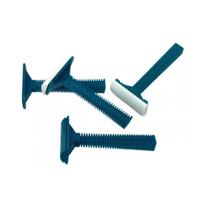 Mide 9 cm de largo, hoja de 3.8 cm doble filo con bordes en forma de peine y su mango es acanalado. Ideales para preparar la piel antes de la cirugía.